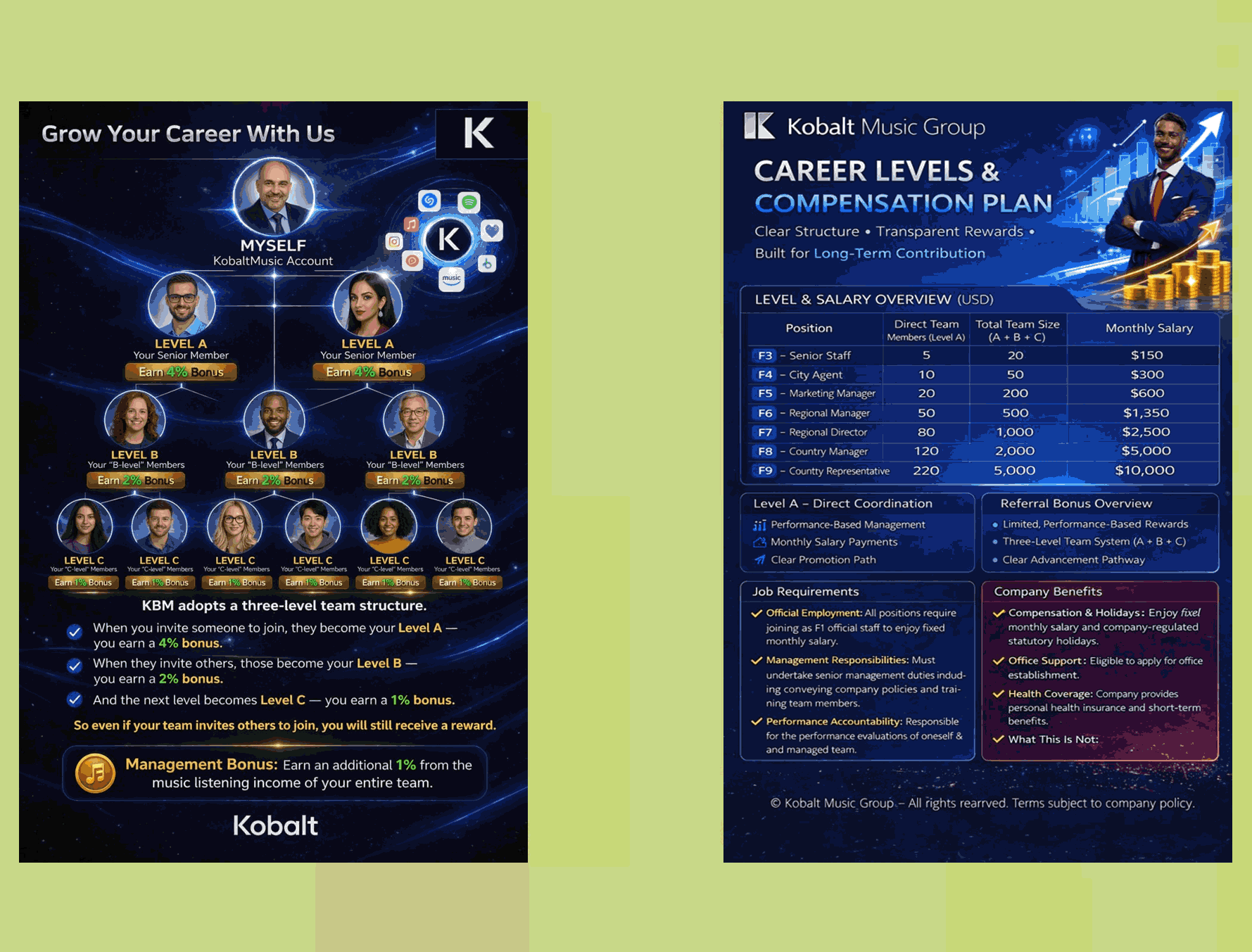 Learn how to earn daily income and management bonuses within the KBM platform.